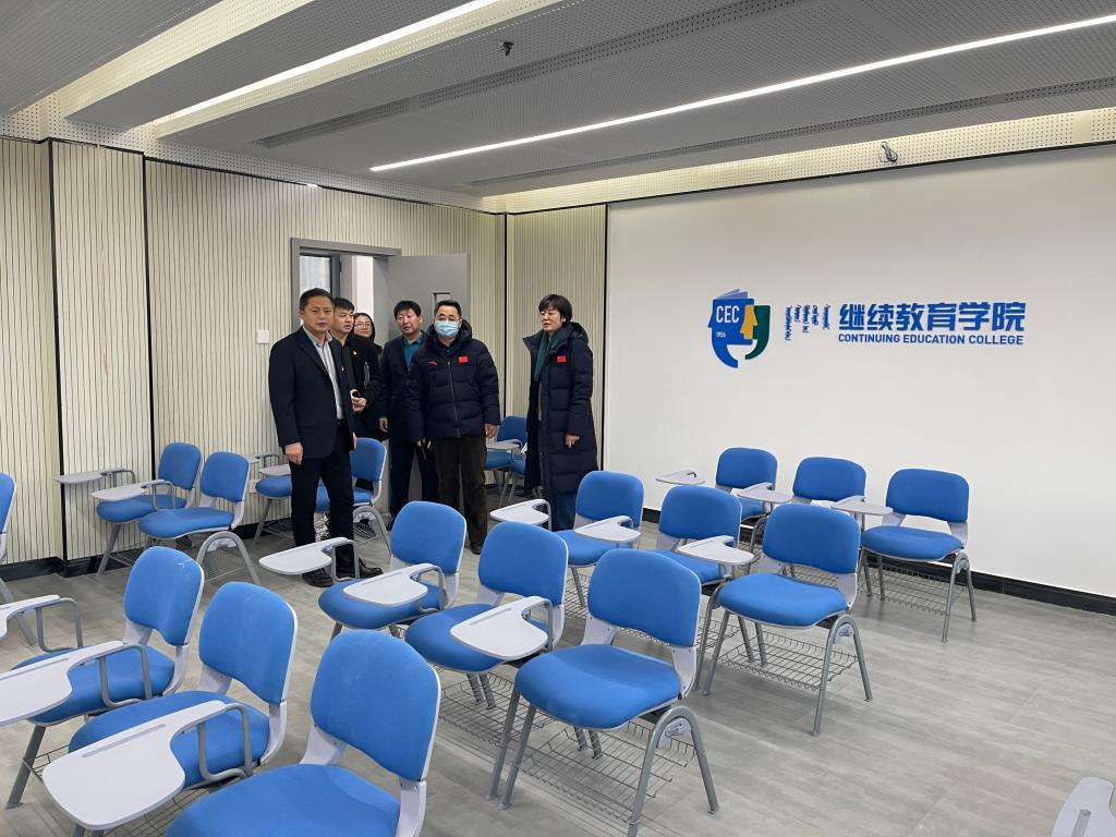 现场查看后,张海峰副校长与学院班子成员进行了座谈,听取了学院工作情况汇报后指出,继续教育是学校服务社会需求的一项重要工作,硬件建设要与软件建设充分结合,在全面提高继续教育质量上下功夫。并对学院即将举办的“内蒙古自治区中小学幼儿园教师培训项目执行办公室揭牌仪式暨内蒙古自治区2022年‘三科’教师培训研讨会”筹备工作提出了指导意见。