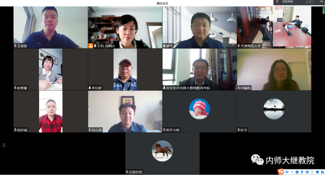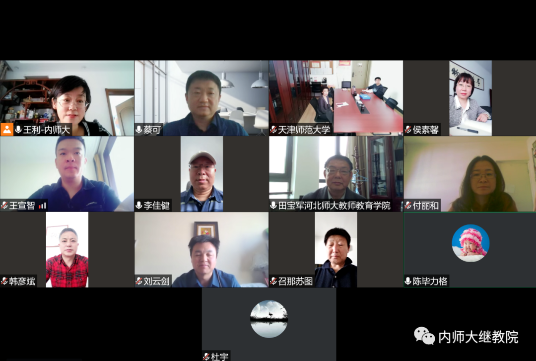 王利首先介绍了内蒙古自治区中部片区2022年国家统编教材教师培训的总体方案和目前培训的进展情况,各协同高校对下一步将要实施的培训方案进行了充分研讨。为提高培训的针对性和实效性,各协同高校采取分片包联、结对帮扶的形式进行线下集中培训、学科实践研修和专家入校指导,并将充分利用网络平台资源,持续为参训教师提供精准化、个性化、多样化的培训服务,着力提升培训效果,促进参训教师的专业成长与发展。