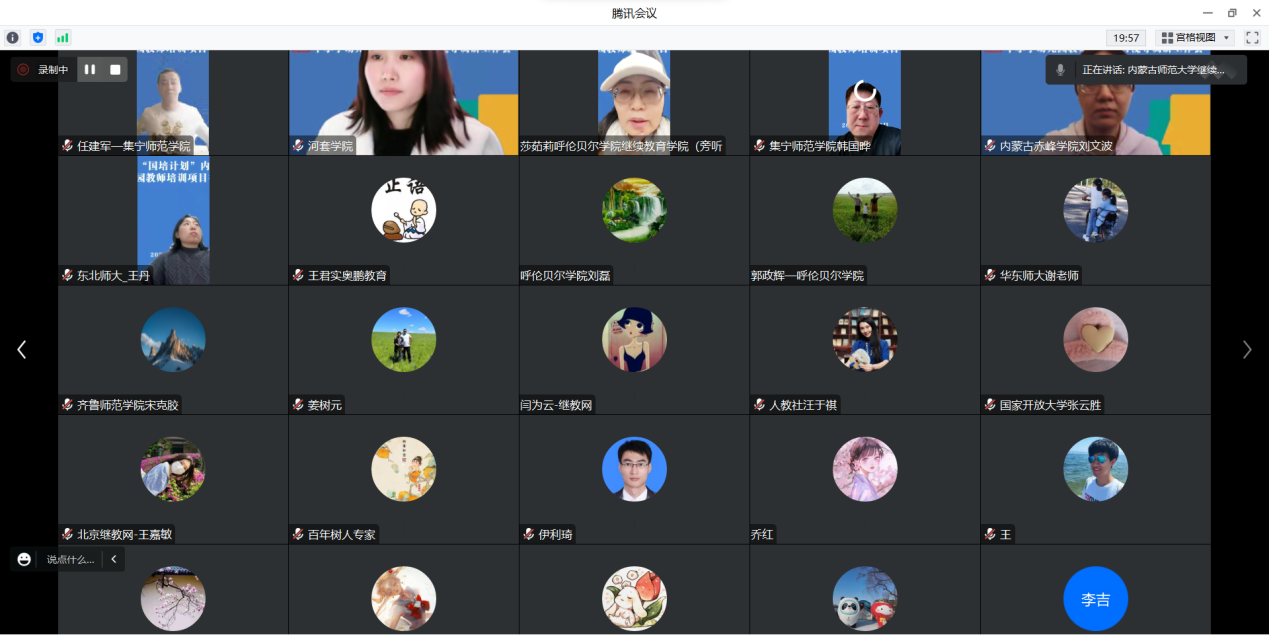 22家承办单位分别汇报了所承担的2022年内蒙古自治区“国培计划”教师培训项目的实施进度和实施情况。