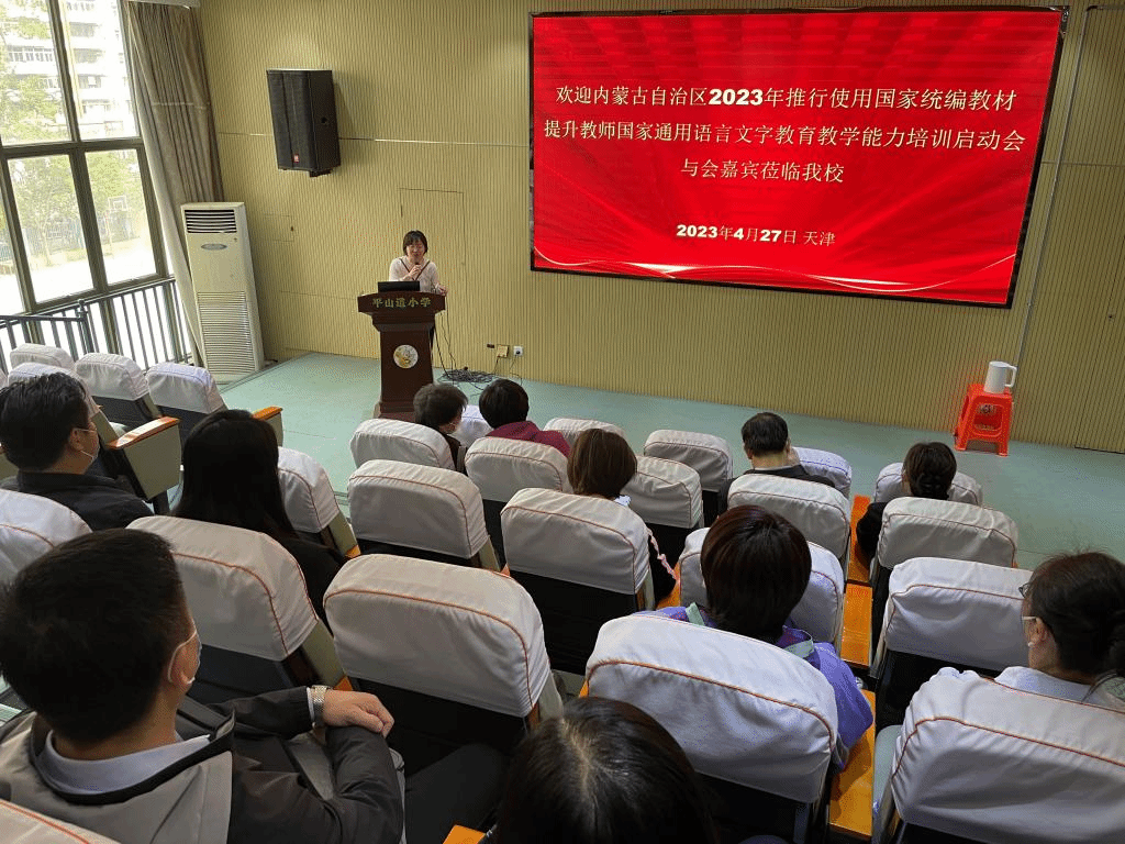 4月27日上午,参加内蒙古自治区2023年推行使用国家统编教材、提升教师国家通用语言文字教育教学能力培训启动会暨高质量培训调研研讨会的与会人员在我院王利院长的带领下到天津市平山道小学调研交流学习。