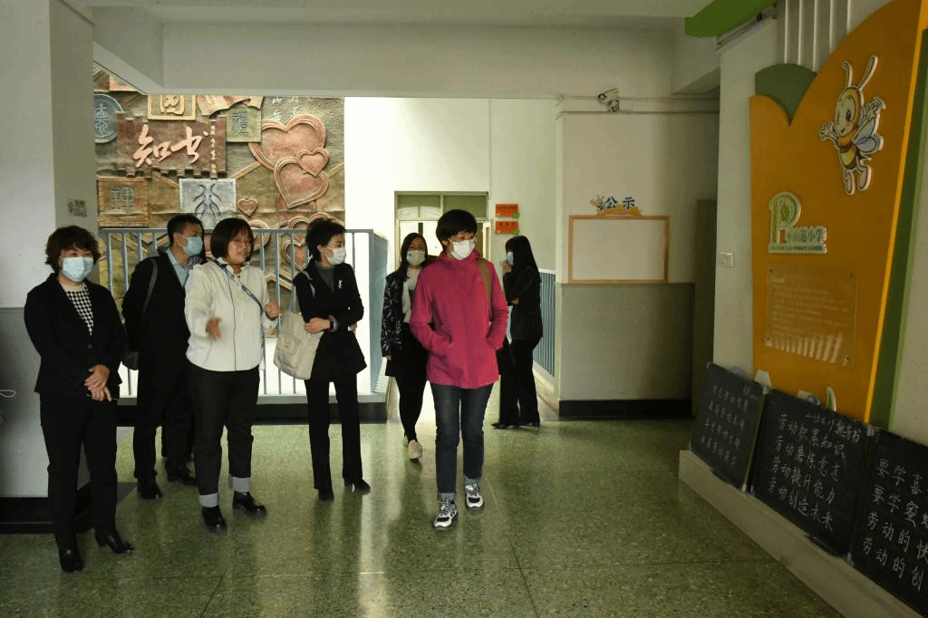 调研团队一行首先参观了校园环境、特色文化长廊、作业展示墙等,之后,在平山道小学阶梯教室,聆听了学校负责人关于平山道小学发展历程、办学理念、办学特色、课程体系建设等情况的介绍,并进行了交流。