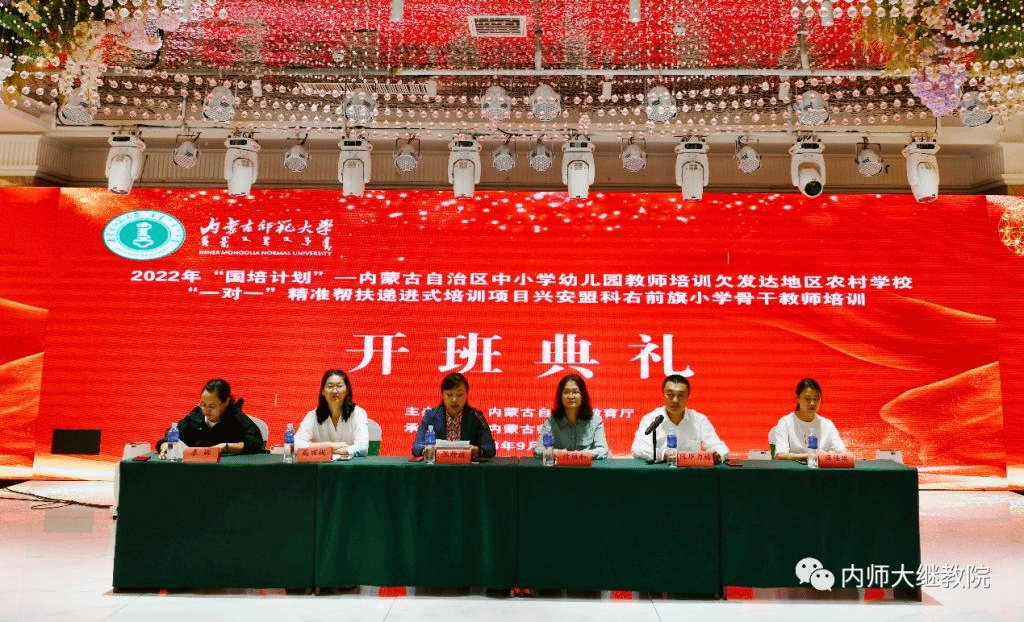 清风送爽,硕果飘香。9月17日上午,我校助力乡村振兴项目——“国培计划(2022)”内蒙古自治区欠发达地区农村学校“一对一”精准帮扶兴安盟科右前旗小学骨干教师培训在维也纳大酒店举行了开班仪式。本项目由自治区教育厅主办、永利官网承办、6776永利集团具体组织实施。兴安盟科右前旗教育局党组成员、副局长张静媛,我校6776永利集团副院长付丽和、高师培训中心主任高丽桃、培训部副主任陈毕力格、培训部教师薛佳琦以及科右前旗300位小学语文、数学、英语、道德与法治4个学科的骨干教师参加了开班仪式。