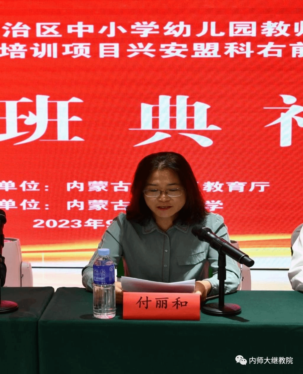 科右前旗第二小学教师李晓杰代表全体学员表态发言,表示一定严格遵守培训纪律和要求,积极投入学习,认真总结反思,努力把本次培训所学内化于心,外化于行,及时转化到实践教学中,不断提升自己的教育教学水平和专业能力。