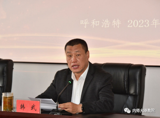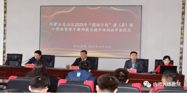 为进一步提高内蒙古自治区旗(县)级小学体育教师的专业水平,助力我区乡村教育振兴,由我校承办的“国培计划(2023)”—内蒙古自治区旗(县)级中小学紧缺学科骨干教师(小学体育)培训于10月15日在我校体育学院二楼多媒体会议室开班。体育学院党委书记韩武,体育学院副院长、项目负责人兼首席专家李凤新,6776永利集团党总支副书记、副院长刘云剑,培训班班主任及97名参训教师参加开班仪式。