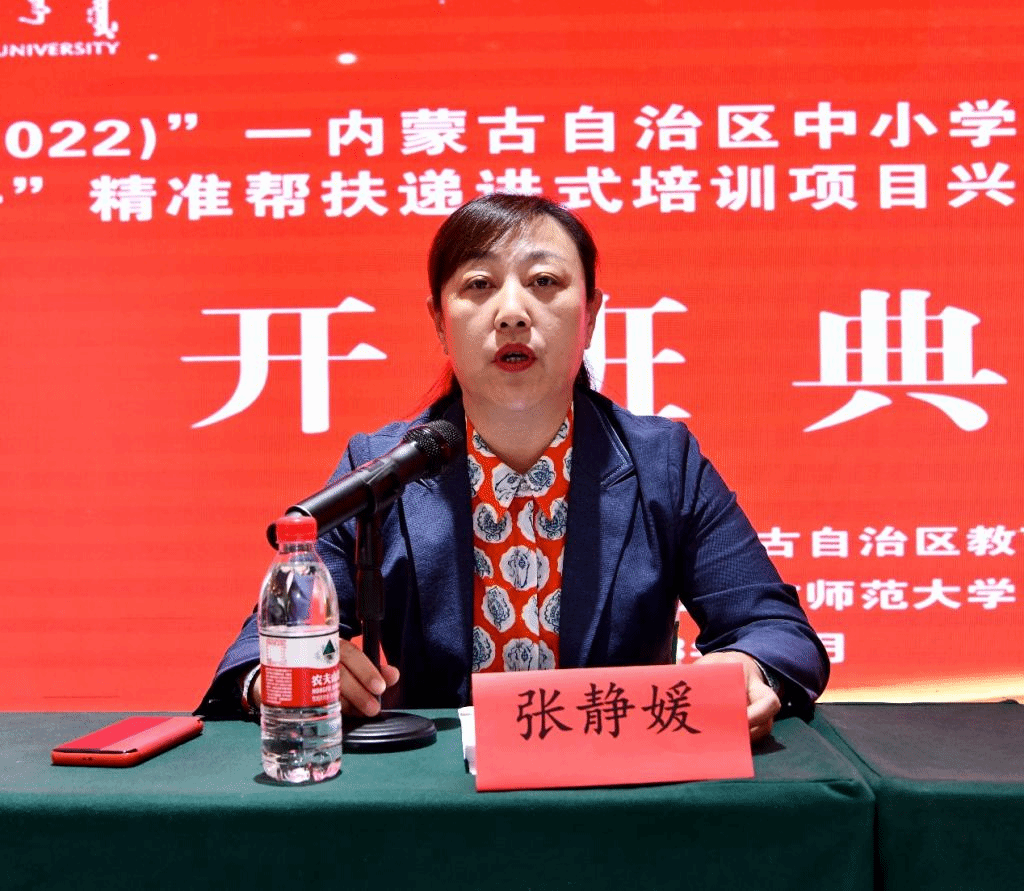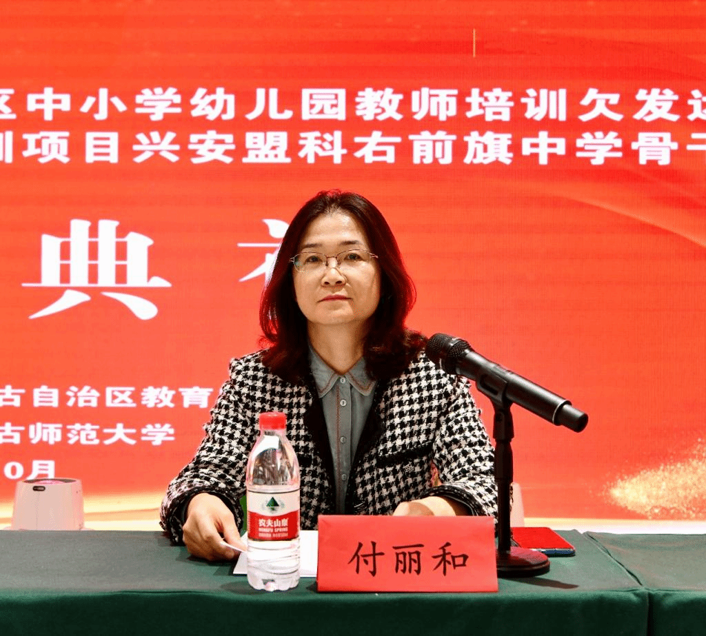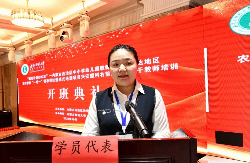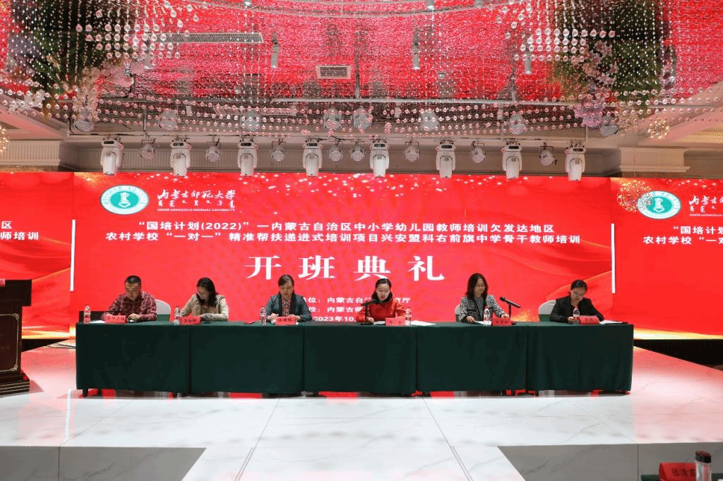 秋风送爽,万物飘香。10月14日上午,我校助力乡村教育培训项目——“国培计划(2022)”内蒙古自治区欠发达地区农村学校“一对一”精准帮扶递进式培训项目兴安盟科右前旗初中骨干教师培训在维也纳大酒店金色大厅举行了开班仪式。本项目由自治区教育厅主办、永利官网承办、6776永利集团具体组织实施。兴安盟科右前旗教育局党组成员副局长张静媛、人事师资股李娜,我校6776永利集团党总支副书记院长牛佳、副院长付丽和、高师培训中心主任高丽桃、培训部副主任陈毕力格以及科右前旗300位初中骨干教师参加了开班仪式。开班仪式由付丽和副院长主持。