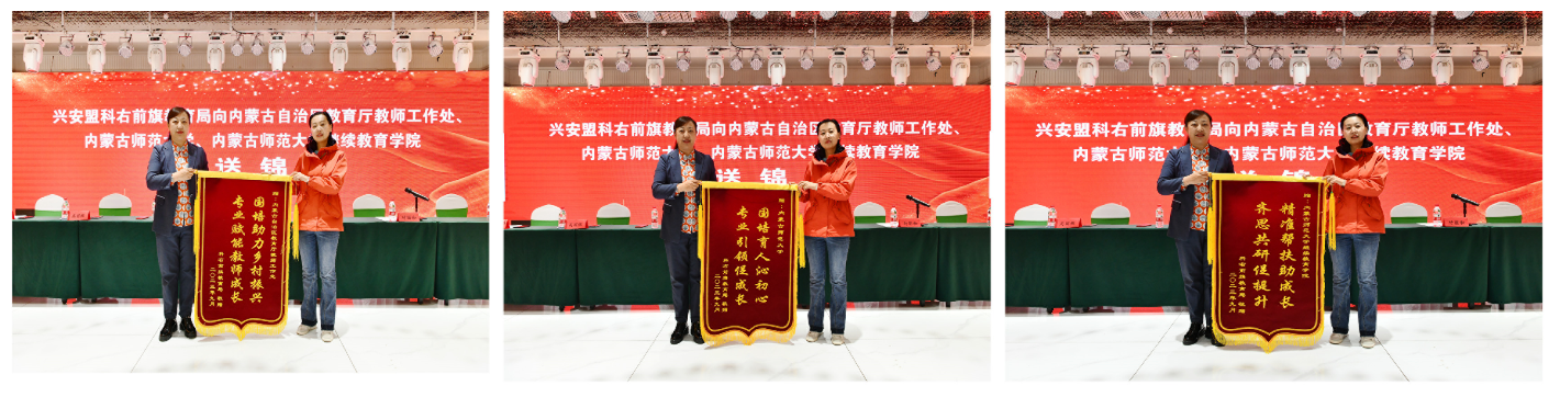 开班仪式上,兴安盟科右前旗教育局向内蒙古自治区教育厅教师工作处、永利官网、6776永利集团赠送锦旗,6776永利集团牛佳院长作为代表接受锦旗。