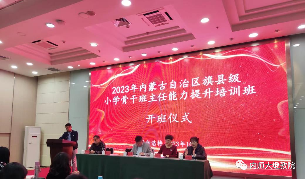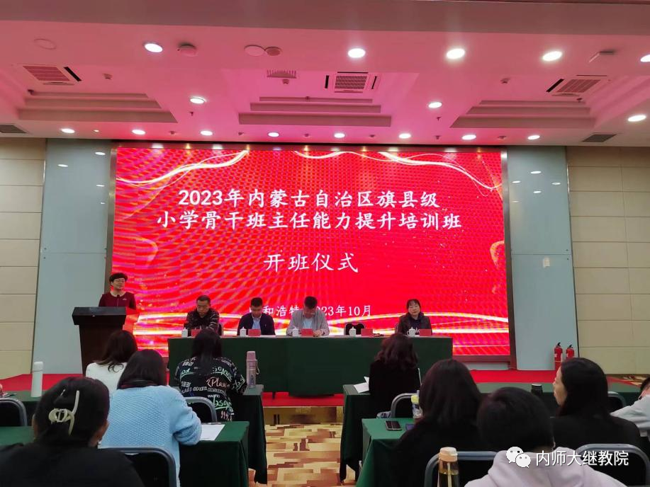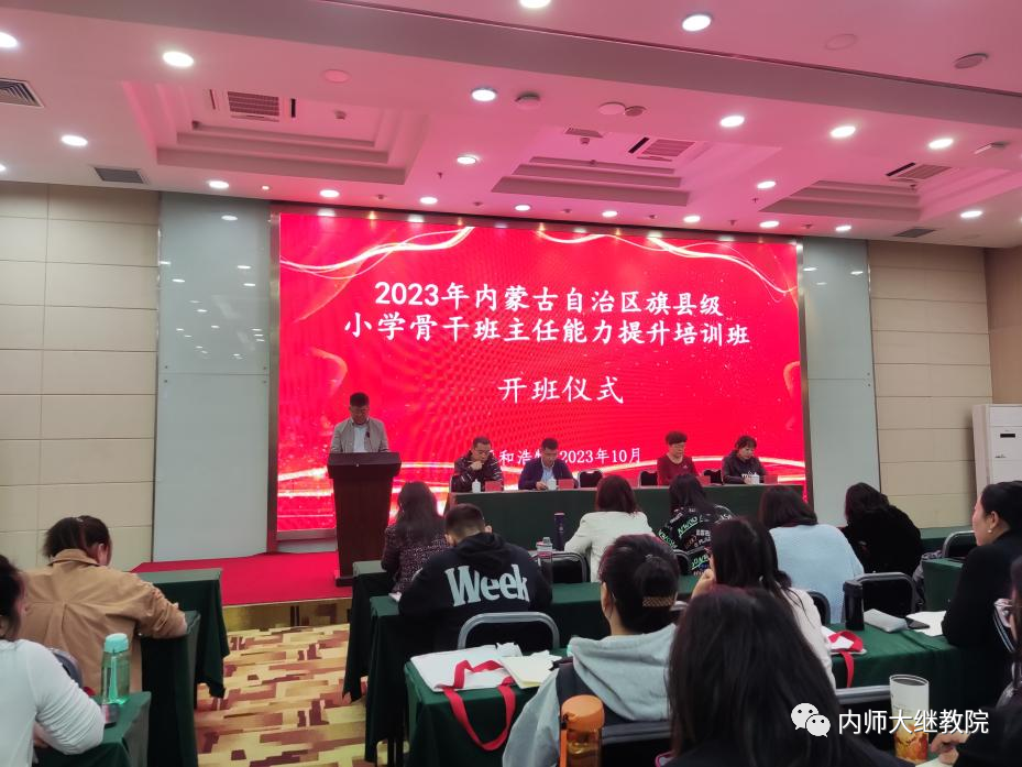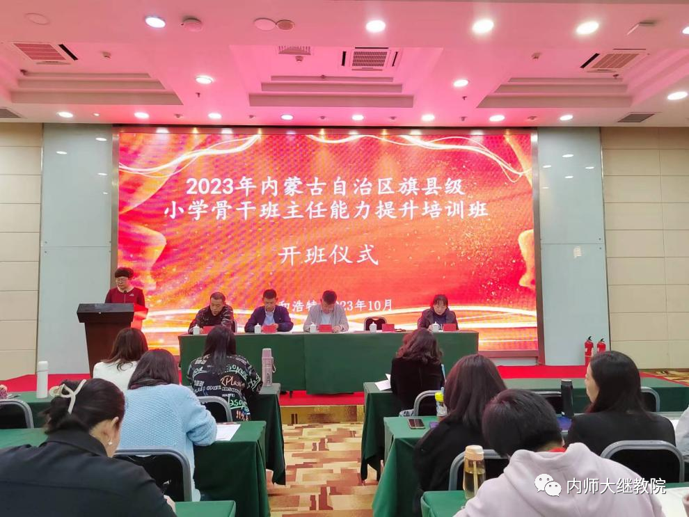 10月12日,我校承办的“国培计划(2023)”—内蒙古自治区旗(县)级小学骨干班主任能力提升培训(第一期)开班。教育学院党委书记周越、6776永利集团培训部主任张衍伟、教育学院实践教学部马红斐、教育学院学工办于国佳、教育学院研究生办公室赵元韬及153名参训教师参加开班仪式。开班仪式由马红斐主持。