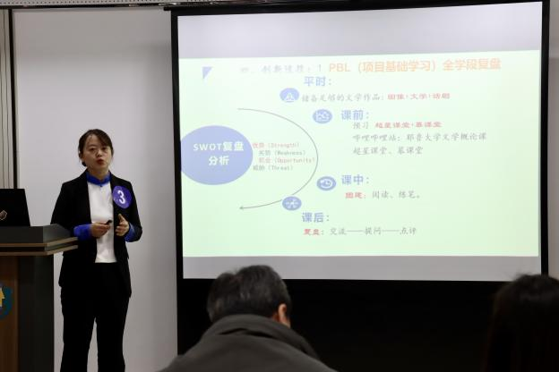 本次大赛共有来自19个学院的38名教师参赛,各位教师在比赛中对所授课程进行了教学设计创新汇报。教师们对课程的性质与意义、学生们的学习情况、教学过程中所遇到的问题以及对课程创新的思考与实践进行了详细地分析。同时,专家评委根据本次大赛的主题与规则,围绕各位教师的现场汇报和创新报告的内容进行答辩,并针对性地为各位教师提出建设性意见。