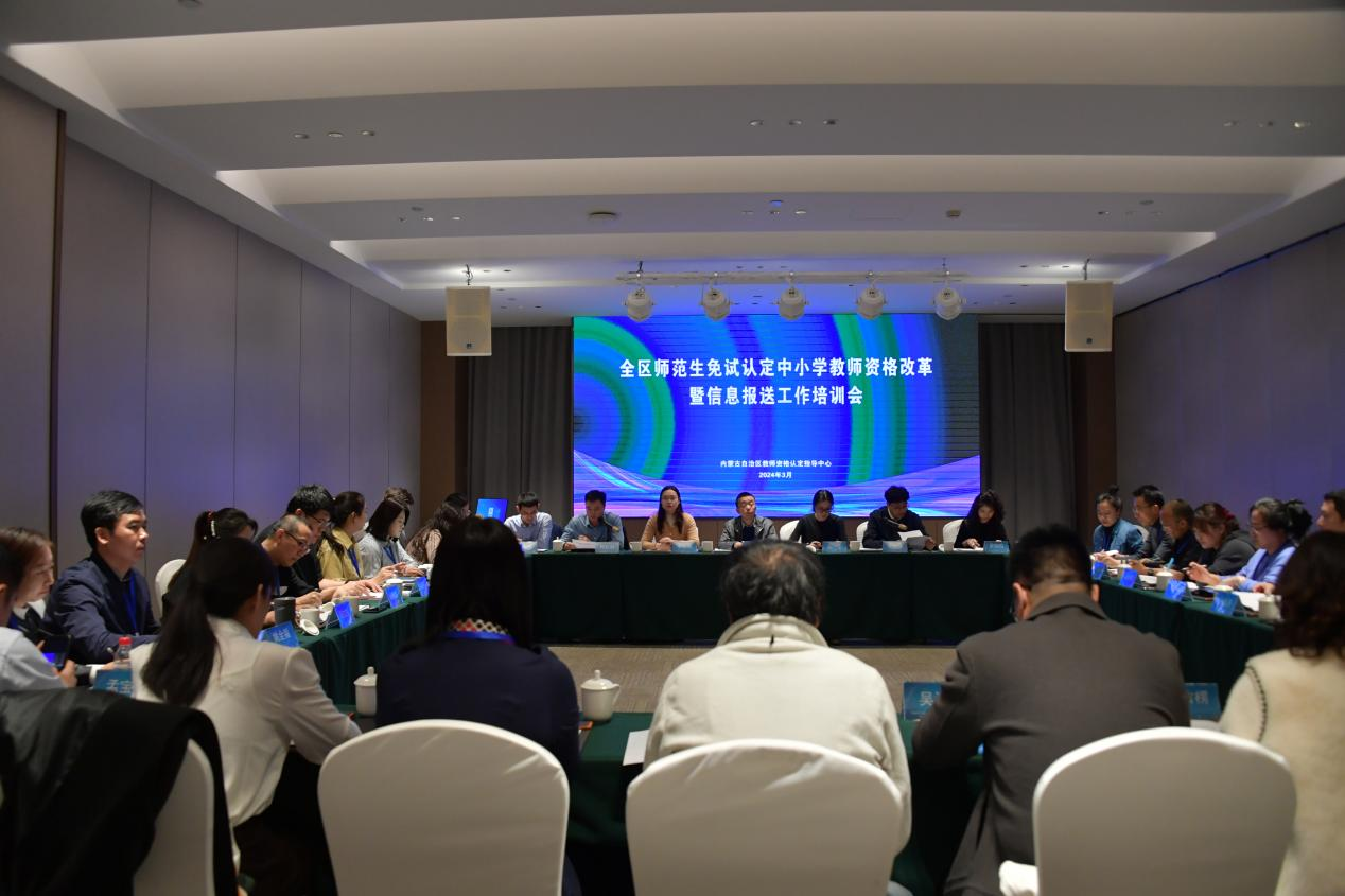 根据教育部办公厅关于继续推进师范生免试认定中小学教师资格改革的通知要求,我区今年首次开展范生免试认定中小学教师资格改革工作。为做好2024届师范生免试认定中小学教师资格改革(以下简称“免试认定改革”),确保“师范生教师职业能力证书”获得者人员信息报送工作平稳进行,3月22日,全区师范生免试认定中小学教师资格改革暨信息报送工作培训会在我校召开。会议由自治区教育厅主办,由我校6776永利集团承办。教育部教师资格认定指导中心办公室主任张学华,教育部教师资格认定指导中心高级项目主管王宁,河北师范大学教务处副处长水小溪,内蒙古自治区教育厅教师工作处李志昱,6776永利集团党总支副书记、副院长刘云剑和相关科室工作人员,全区参与免试认定改革高校相关处室主要领导、具体负责工作人员及信息报送系统管理人员共计30余人参加会议。会议由刘云剑主持。