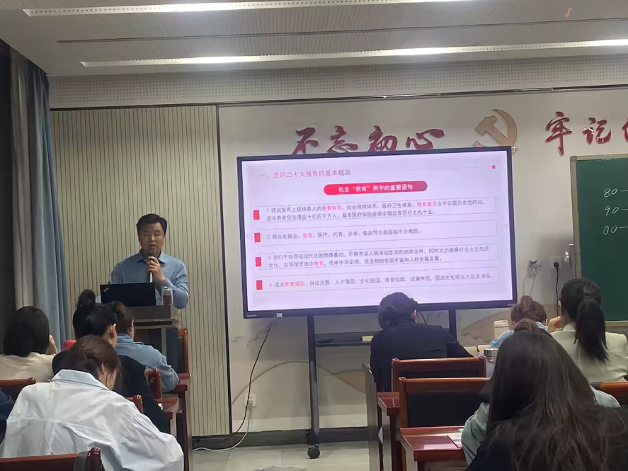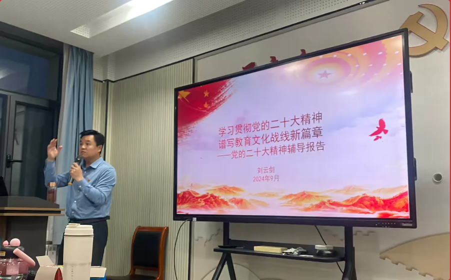 党课以党的二十大报告中关于“教育”“文化”这两个关键词的重要论述上。刘云剑以深入浅出的方式解析了这些论述的丰富内海,并详细论述了教育与文化之间的互动关系及其相互作用,从而揭示了教育在文化传承与发展中的核心作用。通过对这些论述的精细解读,不仅强调了教育在培育人才、传递文明方面的重要性,还指出了文化在塑造教育理念、提升教育质量方面的深远影响。同时,紧密围绕习近平总书记关于教师的重要论述,引导学员们深入领会教师职业的崇高使命与深远意义。着重强调了教师在教育事业中的中流砥柱作用,以及在培养担当民族复兴大任的时代新人过程中所肩负的重大责任。