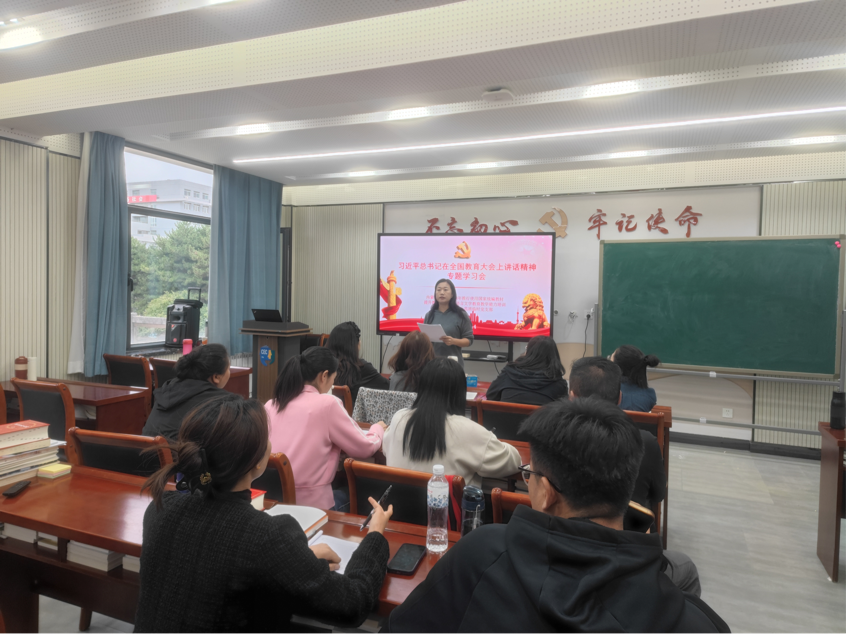 2024年9月14日,为深入学习习近平总书记在全国教育大会重要讲话,贯彻立德树人的根本任务,培育适应新时代要求的人才,推动我国教育事业的强国建设,内蒙古自治区2024年推行使用国家统编教材、提升教师国家通用语言文字教育教学能力小学语文学科示范班临时党支部开展了“习近平总书记在全国教育大会上讲话精神”专题学习会。