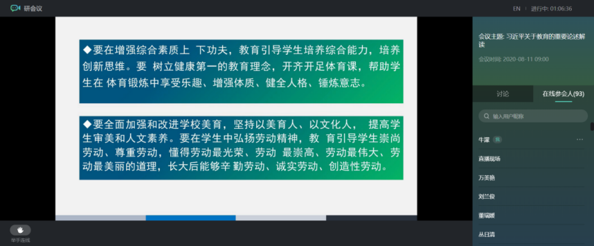 8月12日,“国培计划(2019)”——内蒙古自治区教师培训团队研修项目(师德、党务培训者)第五次线上课程在中国教师研修网学习平台上播出。永利官网党委副书记、硕士生导师高云峰受邀为参训学员讲授了《习近平关于教育的重要论述解读》专题。