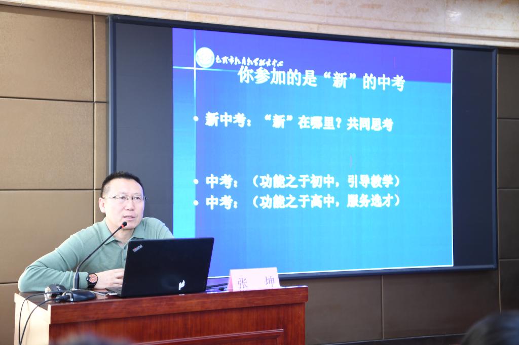 11月9日上午,内蒙古包头教研室道德与法治教研员张坤老师以《中考备考复习策略》为专题,讲述了多年出中考题的经验,分享了自己中考的出题心得,根据新课标的实施调研为参训老师们解读中考新政策,把握中考新方向。
