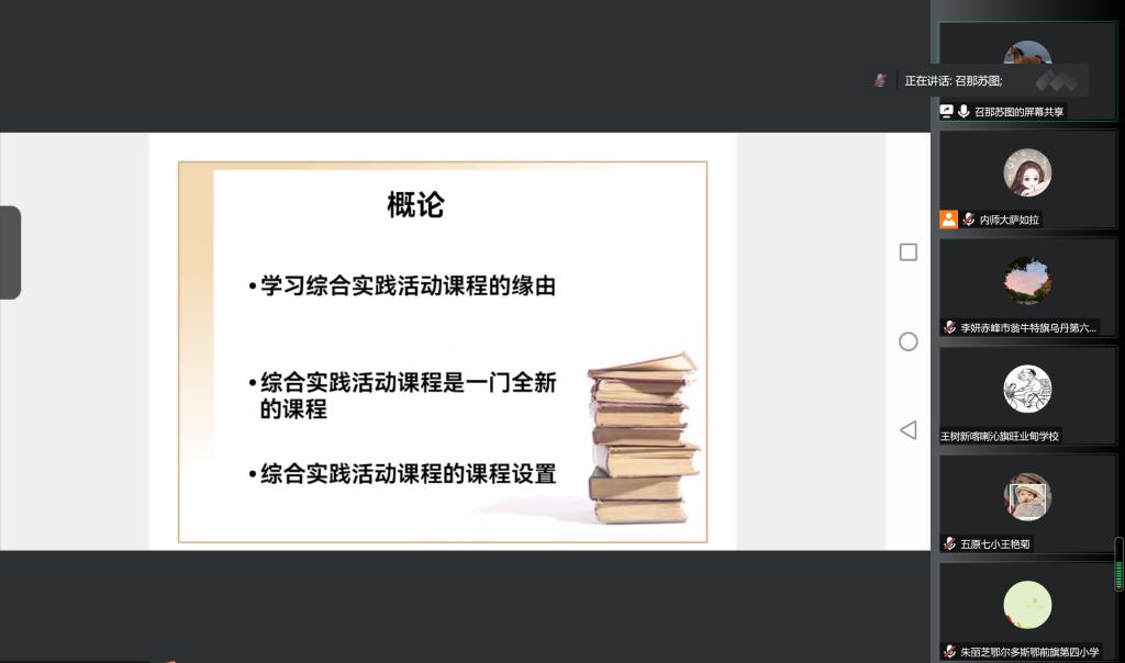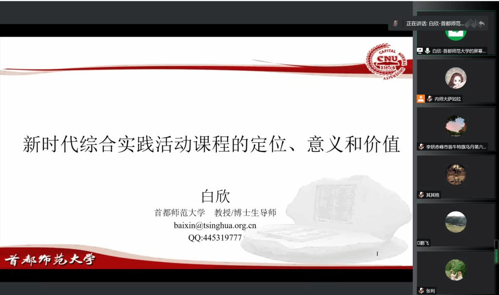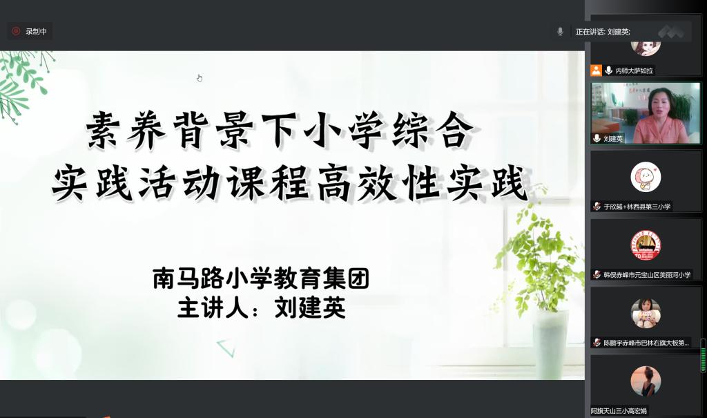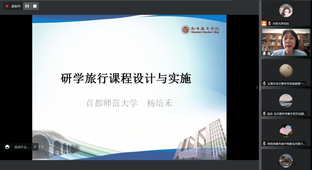 本次线上集中授课阶段于11月20日至25日之间进行,期间邀请了华东师范大学教育学院胡耀宗教授、首都师范大学初等教育学院白欣教授、北京师范大学基础教育学院杨培禾教授、青岛综合实践教育集团总校校长聂麦花、呼和浩特市南马路集团小学校长刘建英等十二位区内外知名专家、知名小学校长、教研员和一线教师,以专题讲座的形式先后讲授“习近平关于教师的重要论述”“铸牢中华民族共同体意识”“新时代综合实践活动定位、意义与价值”“新时期综合实践活动教学策略”“基于《纲要》的综合活动课实施”“新时代小学劳动教育的新思考”“研习旅行课程设计与实施”“小学综合实践课教学研究方法”“《劳动教育课程标准》解读与实施”“小学综合实践课程体系解析”“综合实践活动课程开发实施策略”“素养背景下的小学综合实践课程高效性实践”等十二个专题。