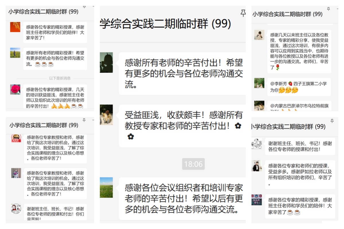通过六天的线上集中培训,在专家们深入浅出、鞭辟入里的讲座指引下,在小组合作深度参与活动过程中,参训教师的专业视野得到进一步拓展、专业理论素养和课堂实践能力也得到进一步的提升。“国培计划(2022)”——内蒙古自治区旗县级小学综合实践骨干教师能力提升项目第二期培训为期六天的线上集中授课阶段结束后,后续将择机开展为期6天的云跟岗。
