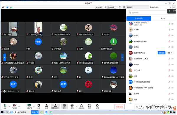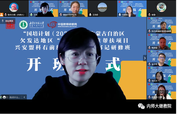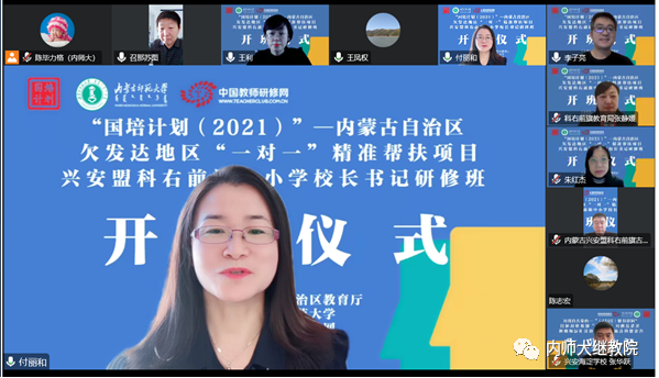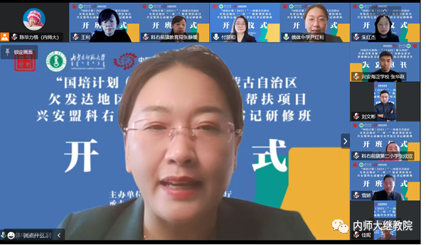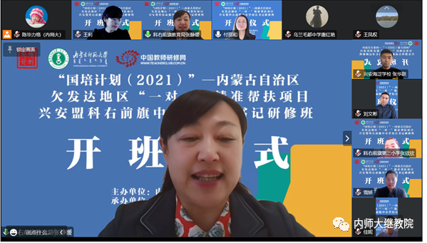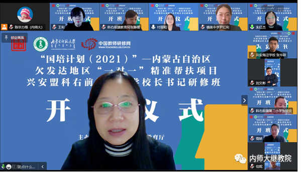王利院长首先对参训学员表示欢迎,并对给予培训大力支持的中国教师研修网和科右前旗教育局表示感谢。王利表示此次举办的中小学党组织书记和校长高级研修班是国培计划(2021)”——内蒙古自治区欠发达地区农村学校“一对一”精准帮扶培训项目中的重要研修项目,中小学书记和校长作为学校发展的领头羊,事关学校的高质量发展。为做好中小学书记和校长培训,6776永利集团协同中国教师研修网在前期充分调研的基础上,精心研制培训方案,创新培训模式与方法,将以全程高质量的实施确保参训学员得到提升和发展。作为培训承办方,王利希望参训的中小学党组织书记和校长充分认识本次培训的重要意义,增强学习动力,全心投入学习,积极参与培训各环节,不断提升个人的专业能力和水平,切实提升线上培训的收获感,在培训结束后,能把培训所学、所得、所获运用到学校管理实践中,达到学以致用,提质增效,为促进自治区基础教育的高质量发展做出更大的贡献。