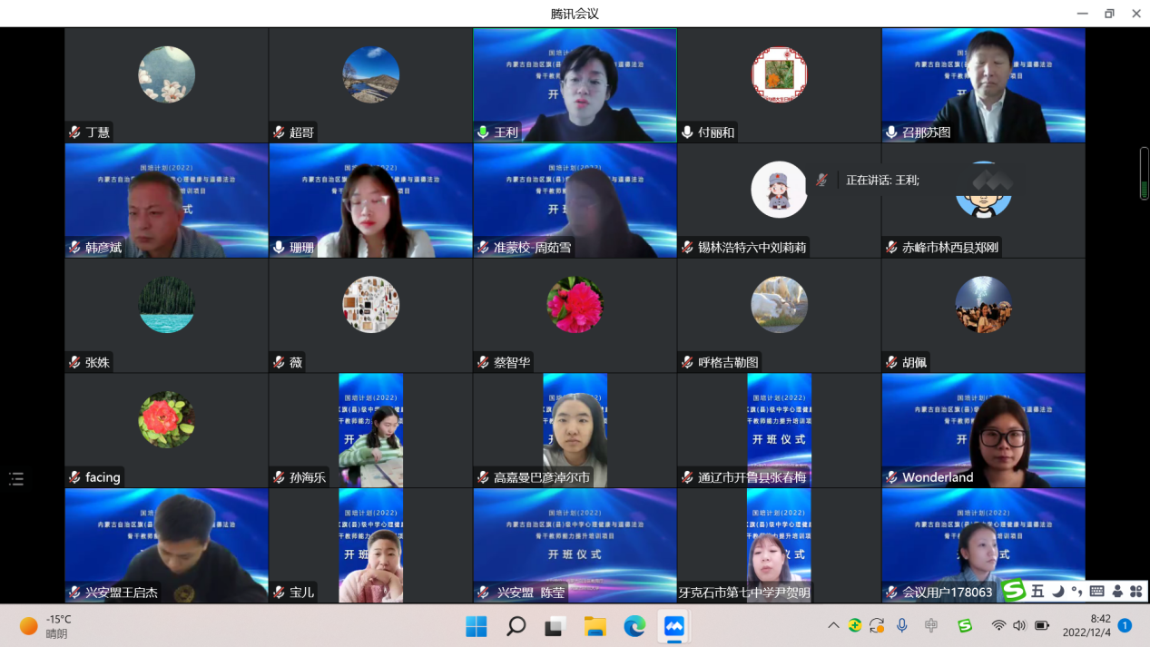 12月4日上午,由我校承办的“国培计划(2022)”——内蒙古自治区旗县级中学心理健康教育、道德与法治学科骨干教师能力提升项目线上开班。6776永利集团党总支书记韩彦斌,党总支副书记、院长王利,副院长付丽和出席开班式。开班式由6776永利集团副院长召那苏图主持,本次培训班班主任及来自全区12个盟市两个学科的200名参训教师参加了开班式。