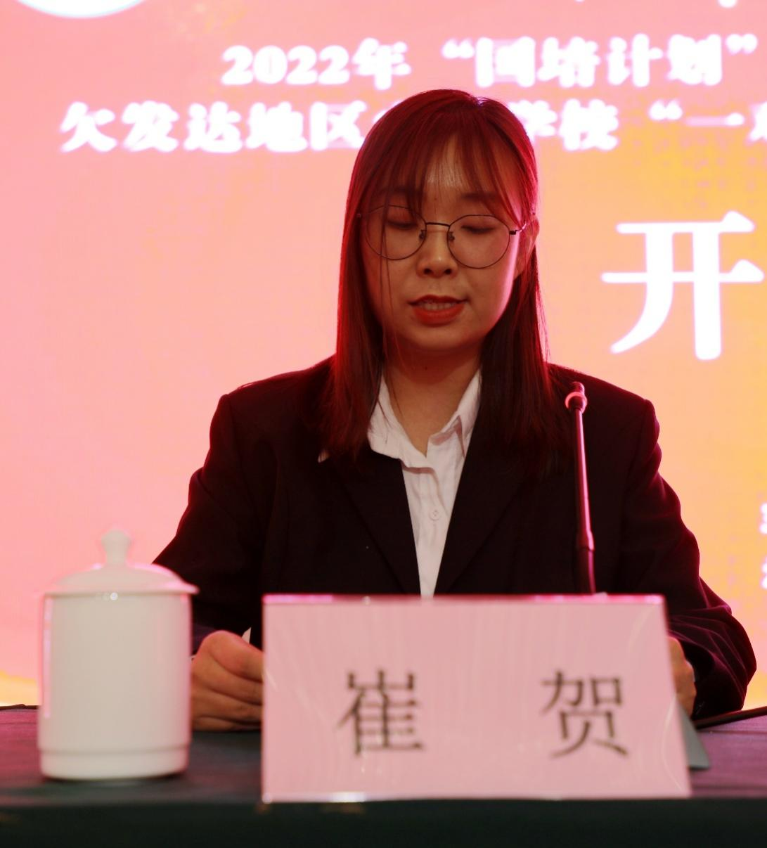 崔贺老师代表全体学员表态,表示本次培训对于参训教师而言既是机遇,也是挑战,大家定会珍惜来之不易的学习机会,并以此为契机,促进专业化成长,让课堂成为乡镇孩子们幸福人生的基石。