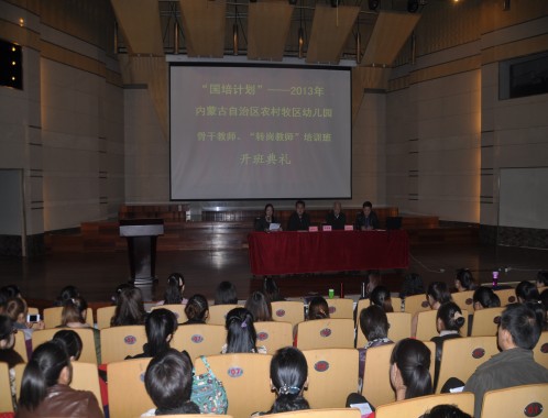 2013年 “国培计划”——内蒙古自治区农村牧区幼儿园“转岗教师”培训项目正在我校有序开展。11月4日—18日,第一期培训班已圆满结束,105名“转岗教师”和161名骨干教师在我校分别接受了为期12天和15天的系统培训,培训效果良好,受到参训学员一致好评。第二期培训班于11月21日举行了开班典礼,来自全区8个盟市的200多名“转岗教师”正在接受培训。开班仪式在我校逸夫楼音乐报告厅举行。