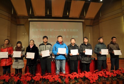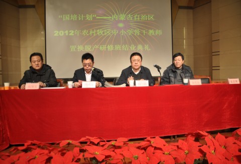 为期三个多月的“国培计划”——内蒙古自治区2012年农村牧区中小学骨干教师置换脱产研修项目,12月29日下午在我校音乐厅举行结业典礼,正式落下帷幕。校长杨一江教授、副校长刘前贵、6776永利集团院长郝保文、党总支书记金民忠出席,全体国培学员参加了结业典礼。结业典礼由副校长刘前贵主持。
