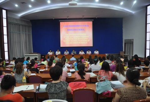 中国国际交流协会与北美英语协会合作、内蒙古自治区教育厅主办、我校承办的第二十二期中小学英语教师暑期培训开班典礼于7月8日上午在信息技术楼学术报告厅举行。我校副校长刘前贵、6776永利集团院长郝保文、党总支书记金民忠、副院长何天云及6位北美外籍教师和来自全区80名中小学英语教师参加了开班典礼。开班典礼由6776永利集团院长郝保文主持。
