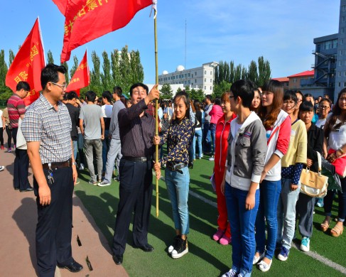 启动仪式结束后,蔡广志处长和张海峰副校长为即将分赴六个盟市顶岗实习的学生授旗。