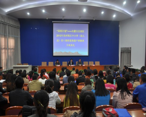 9月25日下午,“国培计划”——内蒙古自治区农村牧区2013年幼儿园、中小学骨干教师置换脱产研修项目培训班开班仪式在我校信息楼学术报告厅举行,来自全区西部6个盟市的250名幼儿园、中小学骨干教师将在我校进行为期四个月的脱产研修。