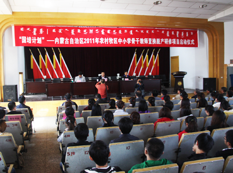 9月21日上午,“国培计划”——内蒙古自治区2011年农村牧区中小学骨干教师置换脱产研修项目启动仪式暨永利官网顶岗实习生出征大会在赛罕校区举行。自治区教育厅师资管理处处长何燕、我校校长杨一江出席启动仪式并分别讲话,我校副校长云国宏主持仪式。