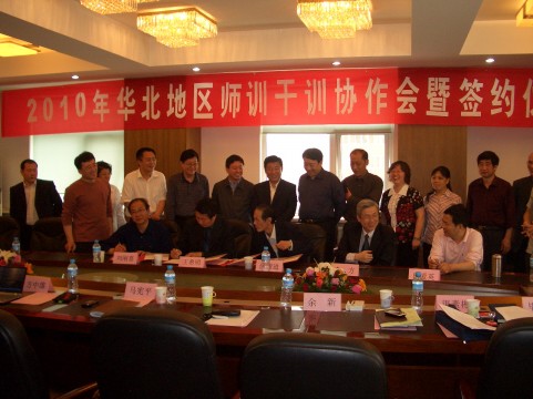 会议上,五省市代表分别介绍了各地师干训的任务、培训的方式、培训成果以及在培训中发现的一些问题,深入交流了看法,达成了诸多共识,签订了《华北地区师训干训协作联盟合作意向书》。《合作意向书》的主要内容包括:一,定期举行教育合作交流活动与教育发展的学术研讨,交流和推广华北地区校长教师继续教育的经验与做法;二,定期开展华北地区校长教师培训调研;三,研究校长教师远程教育的课程、方法和措施,推动华北地区网络资源建设,实现华北地区师训干训协作联盟之间的教师继续教育培训网络互连互通;四,合作开展培训者与培训管理干部的专业化培训;五,建立培训协作联盟例会制度。