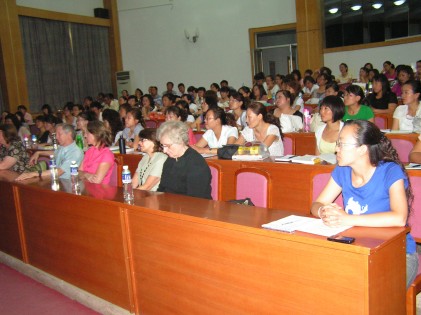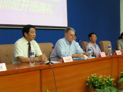 我校巡视员王希明和外教领队约翰·海尔曼先生先后在大会上讲话。王希明副校长首先对来我校进行讲学的各位北美教师表示衷心的感谢和热烈的欢迎,向前来参加此次培训的所有学员表示诚挚的问候和热烈的欢迎。王希明副校长详细阐明了培训项目的背景、意义和目的,并希望学员们好好珍惜这次难得的学习机会,勤奋刻苦,认真学习,积极主动地投入到教学活动中,顺利完成各项学习任务。最后预祝本次培训班圆满结束。