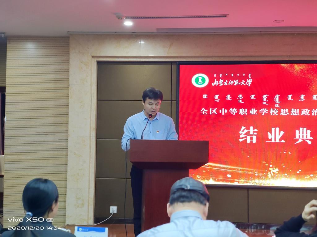自治区教育厅职业教育与成人教育处赵美玲老师出席结业典礼并讲话,对本次培训班给予了充分认可,并对参加本次培训班的全体学员提出了三点希望,一是要提高政治素养,提高政治站位;二是要进一步按照国家课程标准提高教育教学能力;三是要多参加比赛和活动锻炼自己,提升自己。