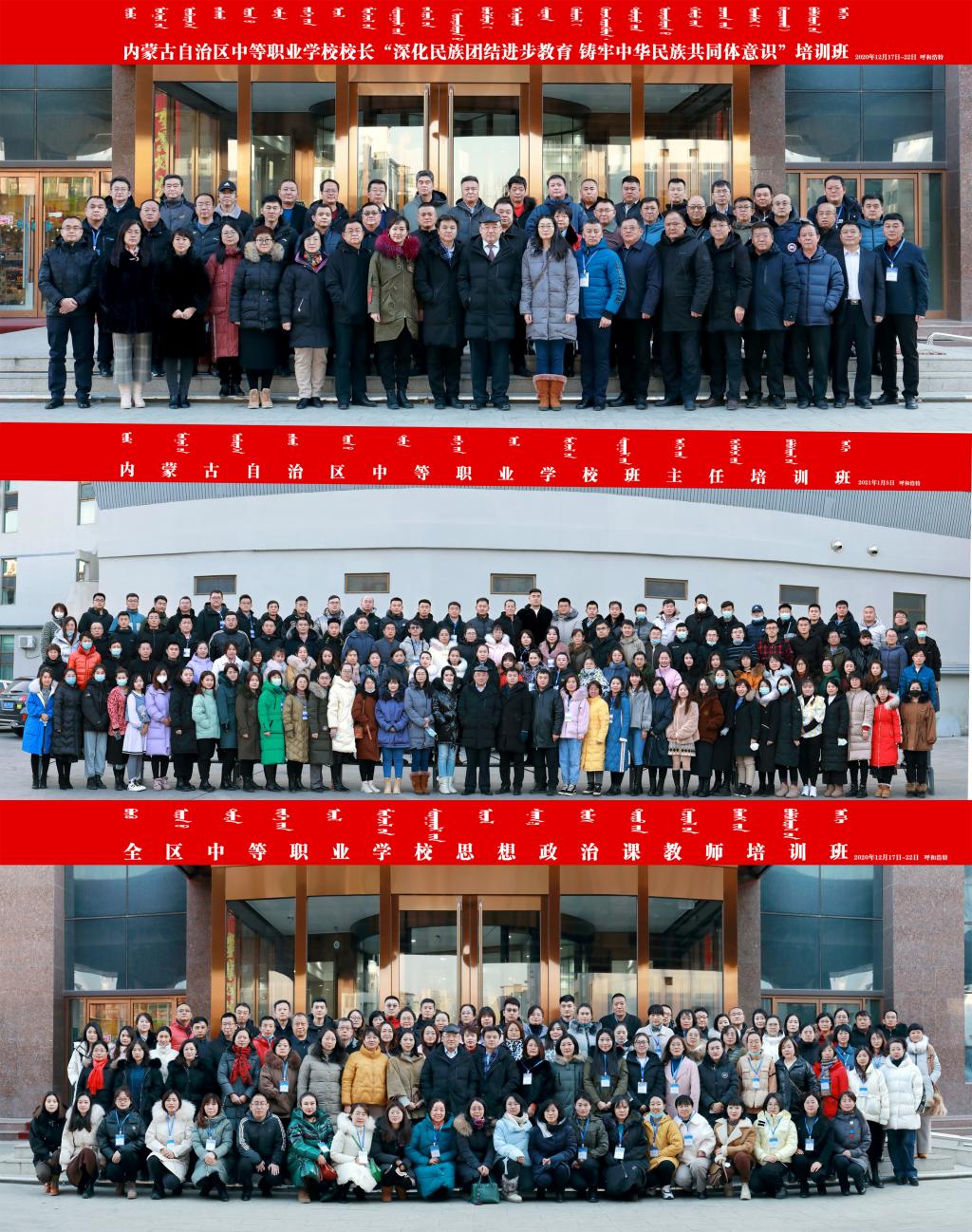为深入贯彻落实《关于全面深化新时代教师队伍建设改革的意见》精神和习近平总书记关于铸牢中华民族共同体意识的重要论述,进一步提升全区中等职业学校校长、班主任、以及思想政治课教师的组织管理和教育教学能力,加快建成一支师德高尚、素质优良、业务精湛、受学生欢迎的校长、班主任以及思想政治课教师的教师队伍,内蒙古自治区教育厅委托永利官网于2020年12月16日—2021年1月10日举办了“全区中等职业学校思想政治课教师培训”、“全区中等职业学校校长‘深化民族团结进步教育 铸牢中华民族共同体意识’专题培训”、“全区中等职业学校班主任培训”3期培训班,共18天,培训全区12个盟市的中等职业学校思想政治课教师91人、中等职业学校校长51人、中等职业学校班主任127人,共计269人。培训效果良好,受到学员一致好评。