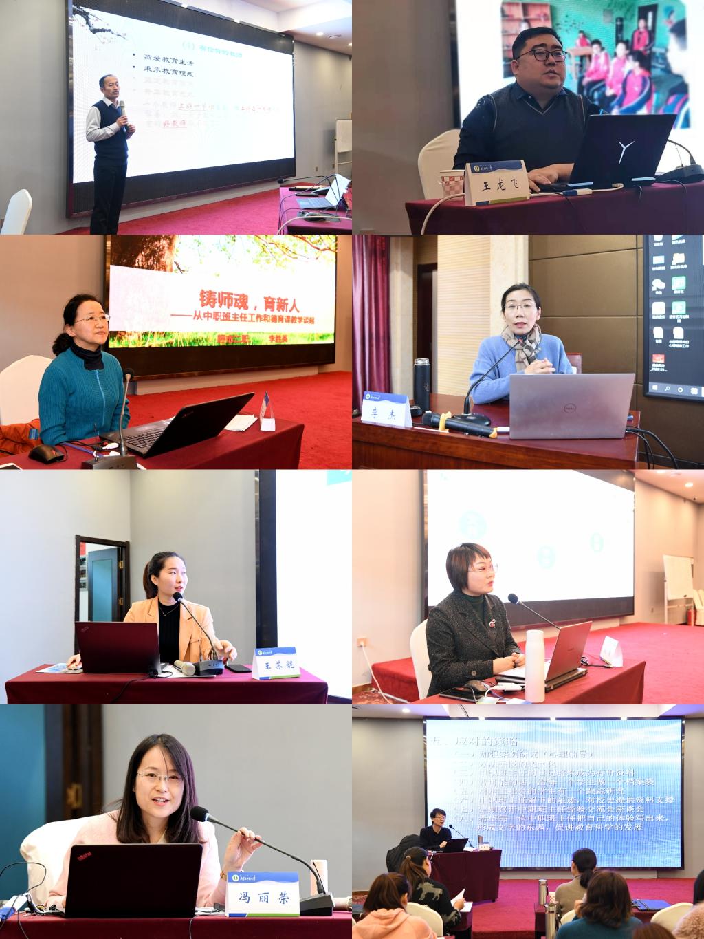 通识课主要围绕牢固树立德育为先的理念,渗透心理健康的内容。邀请永利官网教育科学学院赵荣辉教授作《强师德 铸师魂 ——争做四有好老师》、呼和浩特金川金东学校校长王龙飞作《立德树人 实干兴校》、呼市第二职业中专学校特级教师李胜英作《铸师魂,育新人—从中职班主任工作和德育课教学谈起》、永利官网心理学院博士生导师李杰作《心理健康教育方法在中职班级管理中的应用》和《心理健康与职业生涯规划的融合》等专题讲座。专业课主要邀请区内一线教优秀教师作经验分享和交流。内蒙古工程学校的王苏妮老师就2020年全国职业院校班主任能力大赛参赛经验进行分享,鄂尔多斯市准格尔旗职业中学丽丽老师就中职主题班会的设计技巧进行分享、呼市商贸旅游职业学校冯丽荣老师就中职班主任班级管理和建设路径进行分享。
