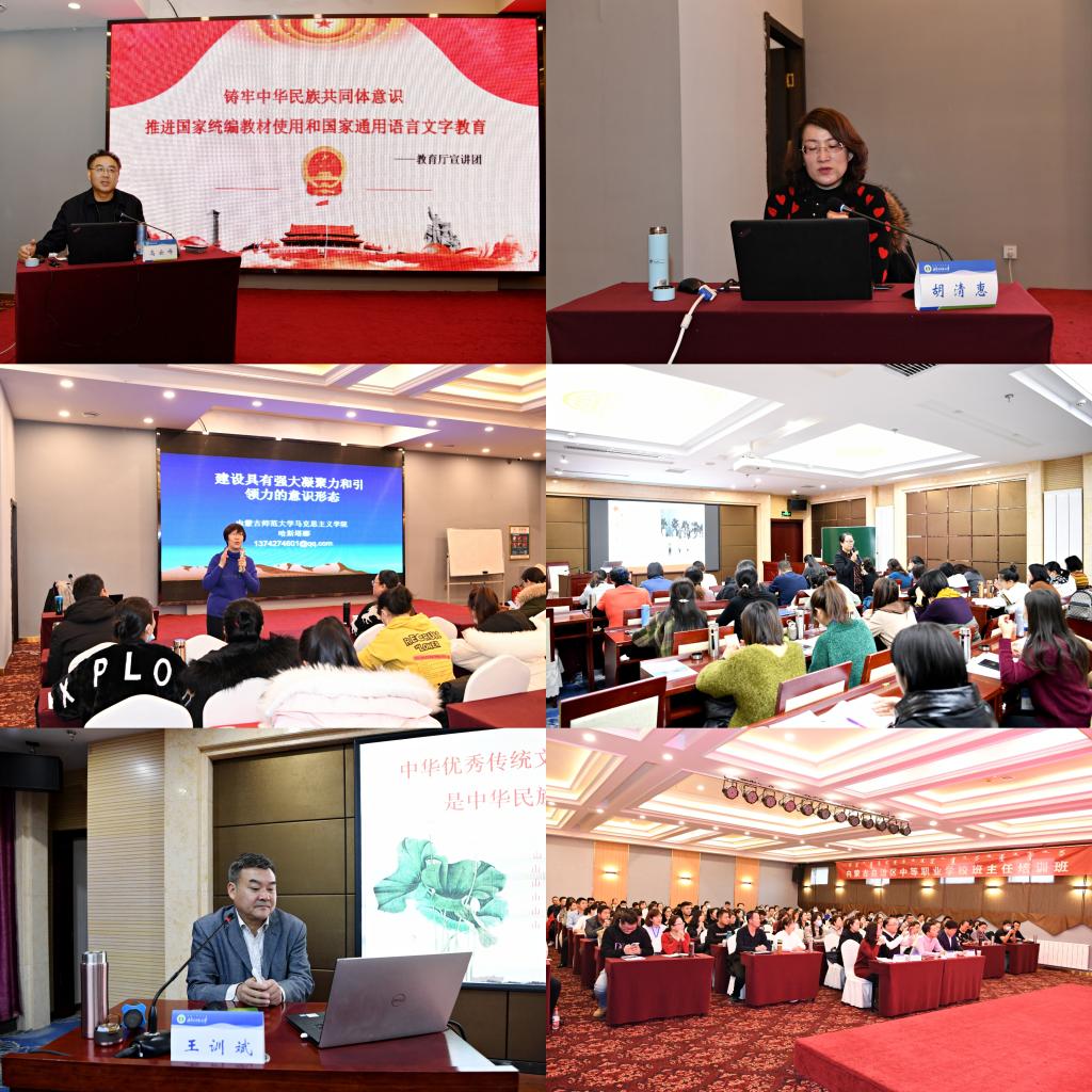 培训内容丰富:主要包括铸牢中华民族共同体意识、通识课及专业课三个模块。首先,培训班紧紧围绕铸牢中华民族共同体意识这一主题,先后邀请区内外专家学者为三个培训班分别作了专题讲座,主要有:永利官网党委副书记高云峰作《铸牢中华民族共同体意识 推进国家统编教材使用和国家通用语言文字教育》、内蒙古党校民族理论教研部胡清惠教授作《坚持中国特色解决民族问题的正确道路,铸牢中华民族共同体意识》、永利官网马克思主义学院哈斯塔娜教授作《建设具有强大凝聚力和引领力的意识形态》、永利官网马克思主义学院王立华教授作《加强民族团结 铸牢中华民族共同体意识》、首届齐鲁名校长、全国名优校长王训斌教授作《中华优秀传统文化是中华民族大团结的根本》等。