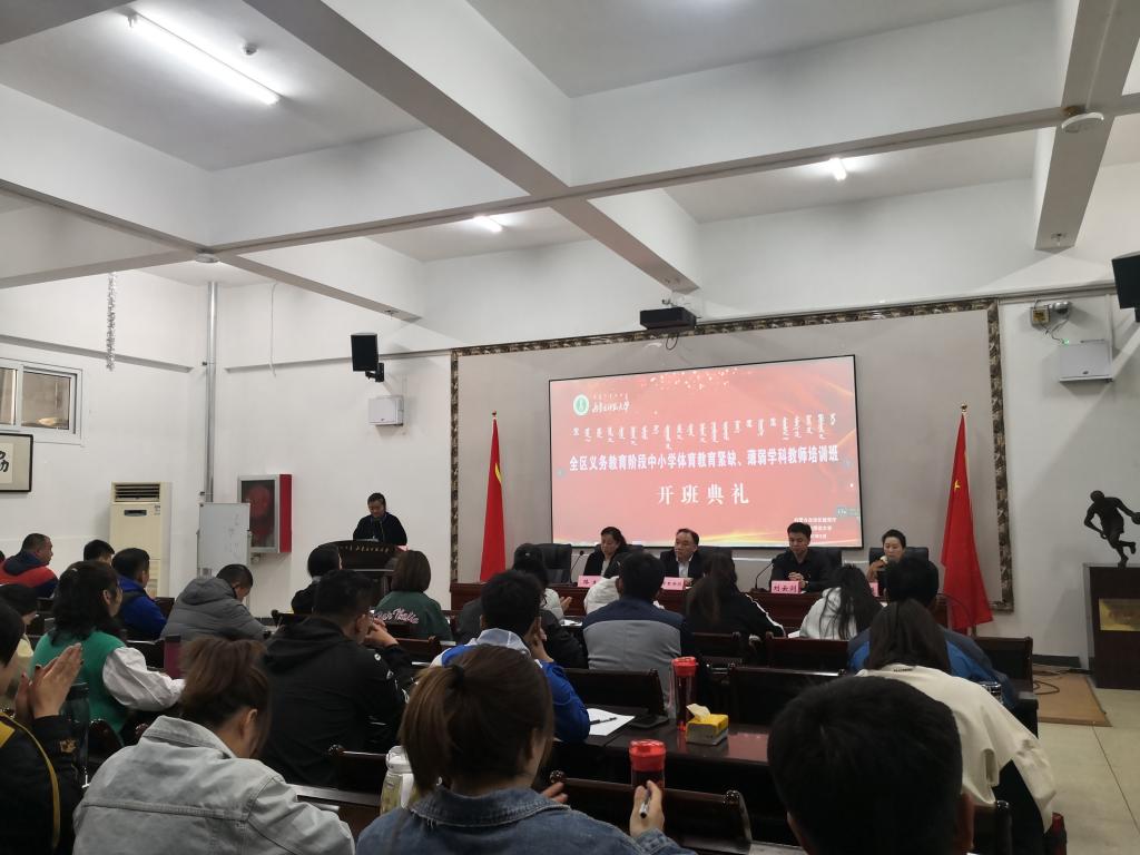 本次培训体育教师培训班分中小学两个班进行,培训内容既包括了铸牢中华民族共同体意识的有关专题,又紧紧围绕新修订的义务教育课程标准,更好地促进我区义务教育阶段中小学体育学科教师更新教育观念、拓宽教育视野,进一步提高教育教学水平和实施素质教育的能力。