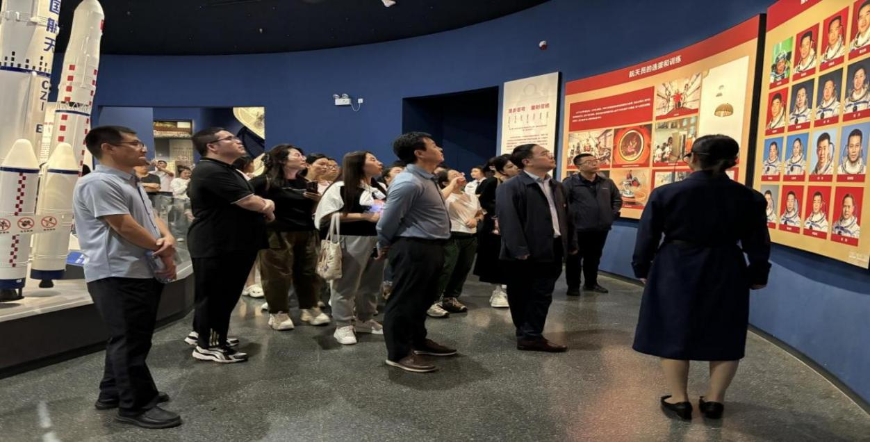 “飞天神舟”展厅的四个主要单元为“祖国的航天事业从内蒙古起步”“祖国的航天事业步入世界先进行列”“为了人类的和平探索太空”以及“互动天地、探索太空”。学员认真听取了讲解员的讲解,仔细观看了东风航天城的建设历程、内蒙古自治区政府和各族人民对航天事业的支持,以及我国航天事业的辉煌成就等内容的展示。特别是内蒙古作为我国航天事业的重要基地,从第一个导弹综合实验基地的建立到多次载人航天任务的圆满成功,让每位学员深感自豪。