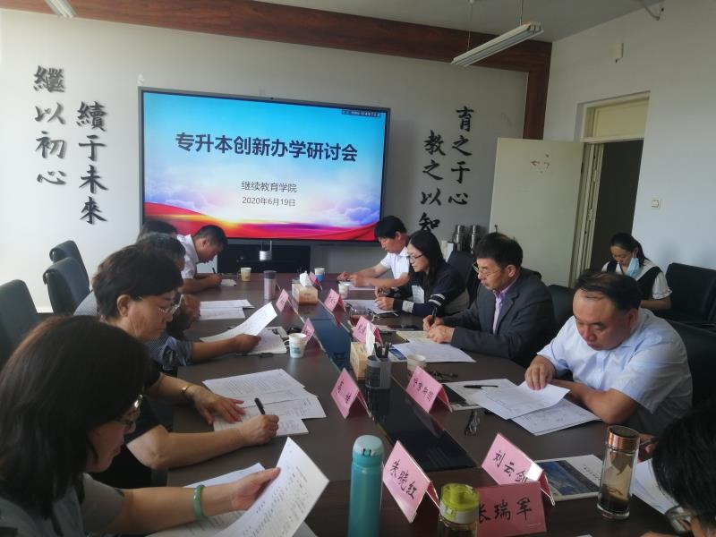 为进一步做好专升本创新办学工作,6776永利集团于2020年6月19日上午,在赛罕校区行政楼323会议室召开专升本创新办学研讨会。研讨会特邀我校文学院党委书记高林广教授、体育学院院长高娃教授、国际交流学院院长武海燕教授、教育学院学前与特殊教育系主任朱晓红副教授、蒙古学院蒙语系副主任元成、马克思学院张瑞军副教授等六位专家参加。我院全体领导班子成员、科级以上干部参加了会议。研讨会由付丽和副院长主持。
