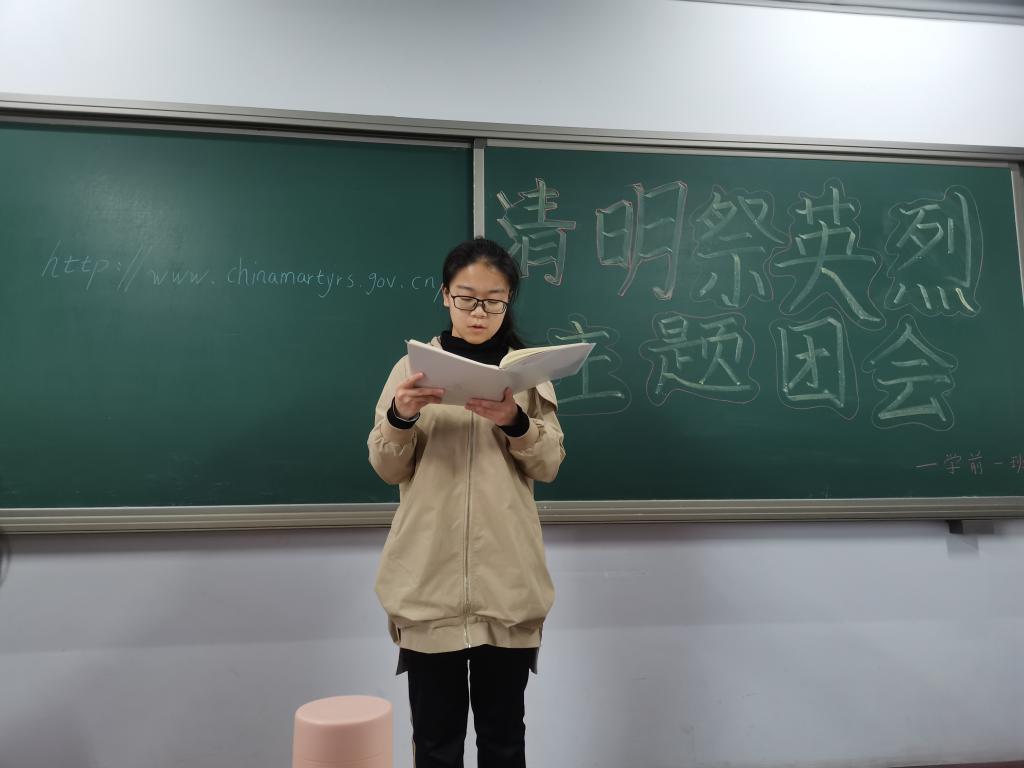 活动期间由班级党员分享一位英烈的故事,崔丽荣分享抗美援朝英雄杨育才的事迹,在“金城战役”中,杨育才带领小分队击毙击伤敌团长以下97人,俘敌军事科长、榴炮营副营长等19人,缴获李承晚亲自授予“白虎团”的“优胜”虎头旗,圆满完成突袭任务,为金城反击战取得最后胜利做出了突出贡献。1964年问世的现代京剧《奇袭白虎团》中的主人公“严伟才”,其原型就是杨育才。