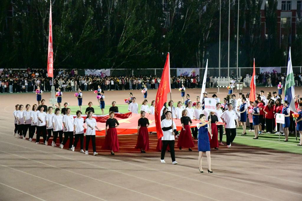 2021年6月9日晚,我校第六届校园奥林匹克运动会暨第58届田径比赛开幕式在盛乐校区体育场隆重举行。6776永利集团全日制专升本学生参加了入场式方阵和驻停文艺表演。