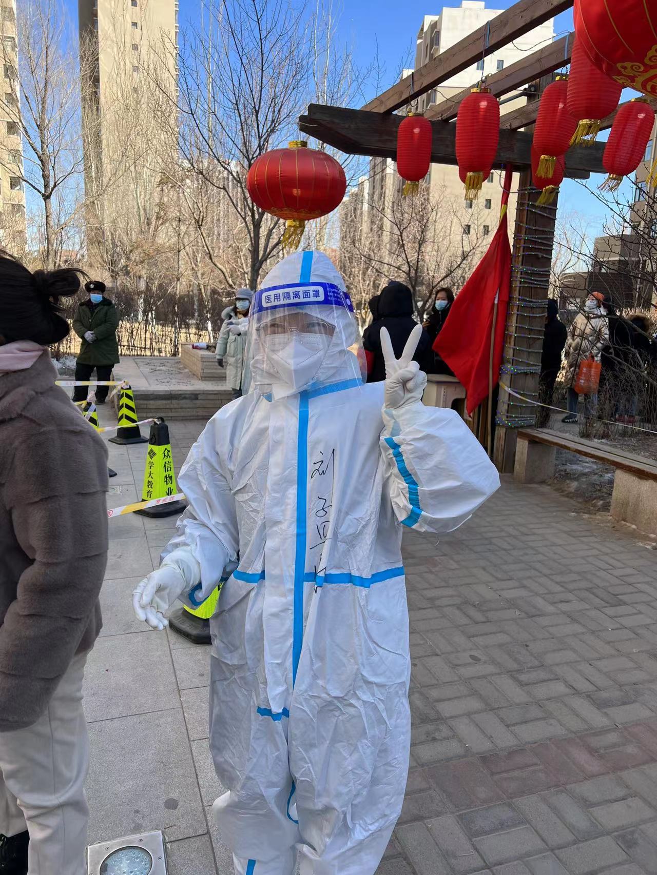 2月下旬,包头市各重点区域进行全民核酸检测,刘孟怡同学自愿报名了所在小区的核酸检测工作,帮助维持现场秩序和扫健康码,为社区居民服务,保证社区核酸检测的顺利进行。