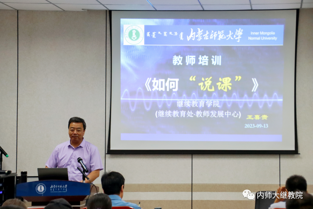 为提高我校青年教师的教学水平,进一步夯实青年教师的教学基本功,建设一支专业过硬、素质优良的青年教师队伍,9月13日,我校6776永利集团(继续教育处、教师发展中心)邀请王喜贵教授在赛罕校区文史楼三楼学术报告厅为我校教师开展了题为《如何“说课”》的专题培训。来自我校各学院、各部门100余位教师参加了培训。