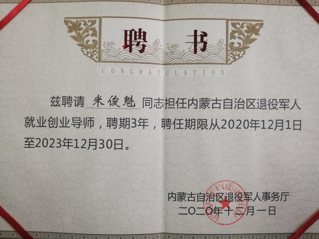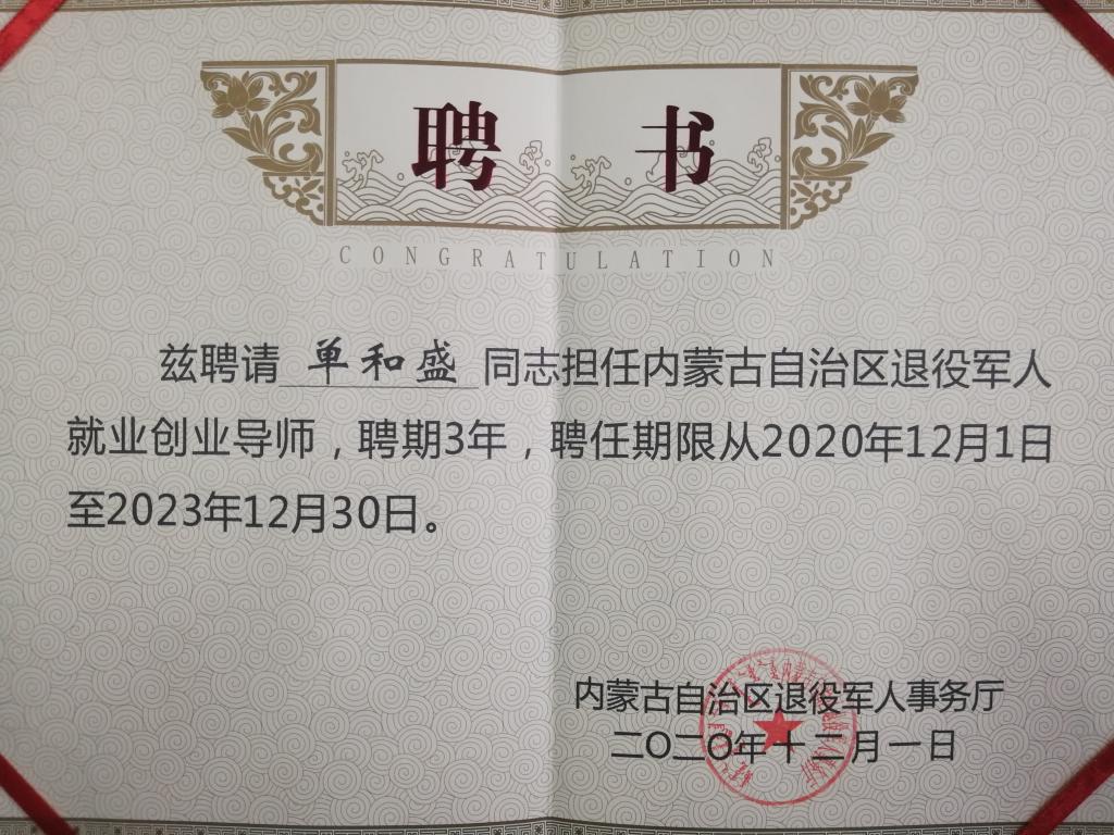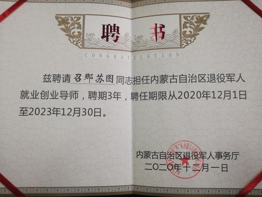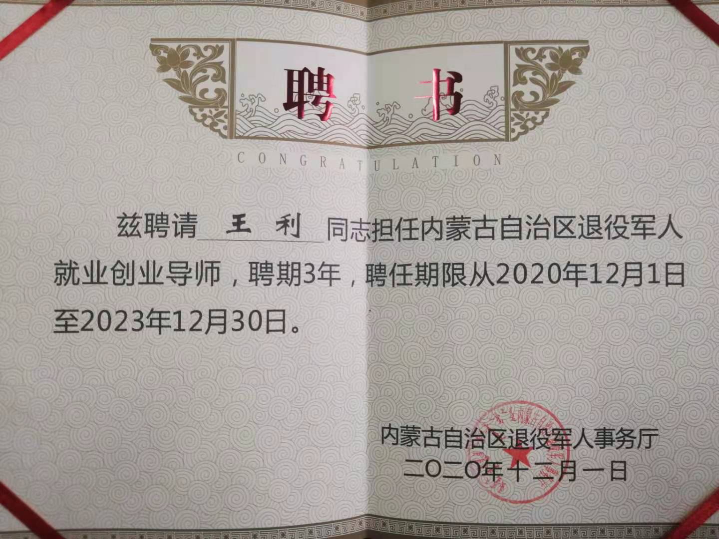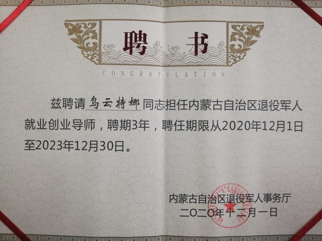2020年7月,我校6776永利集团组织相关学科、领域专家、学者共计54位教师进行了统一申报。经过自治区退役军人事务厅遴选,我校有12位教师被聘为“内蒙古自治区退役军人就业创业导师”。