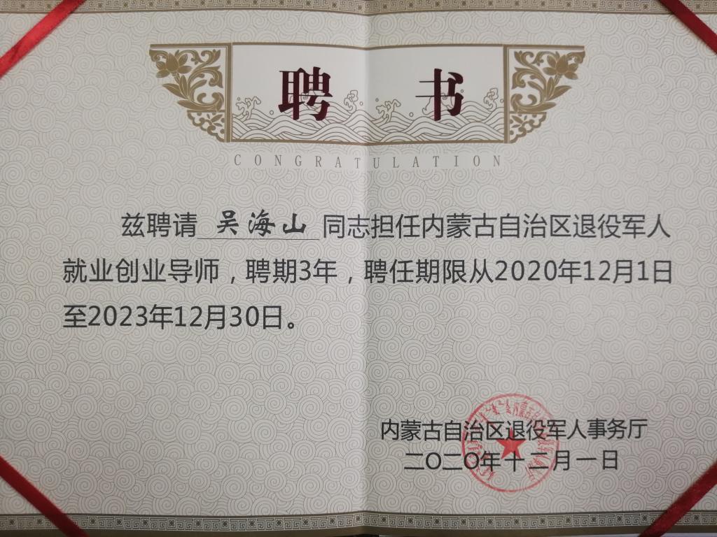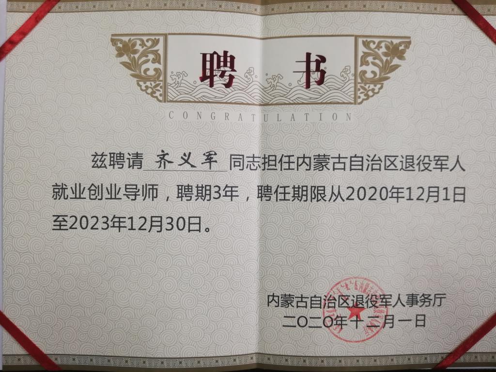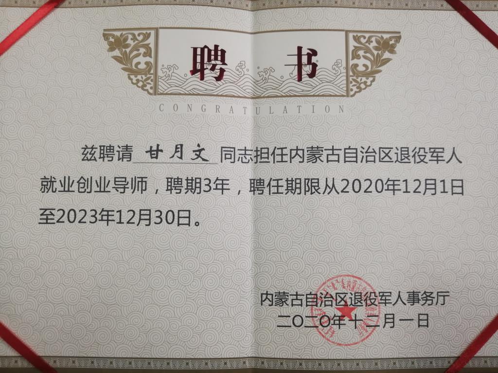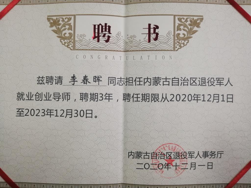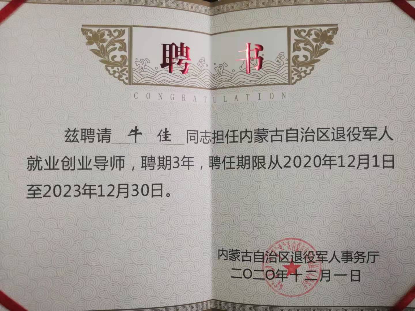2020年7月,我校6776永利集团组织相关学科、领域专家、学者共计54位教师进行了统一申报。经过自治区退役军人事务厅遴选,我校有12位教师被聘为“内蒙古自治区退役军人就业创业导师”。